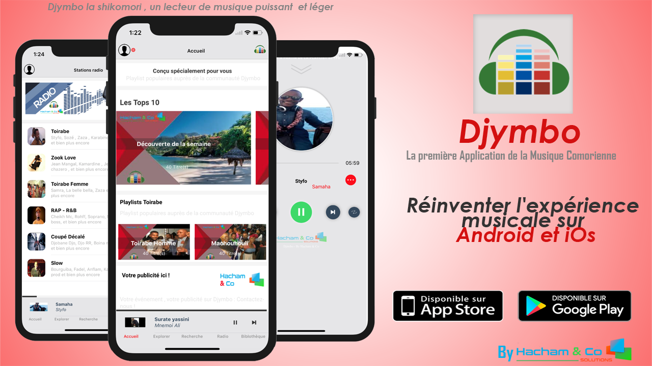 Télécharger Djymbo - Bénéficiez gratuitement d'un catalogue étendu de chanson comorienne sur Android et iOS.